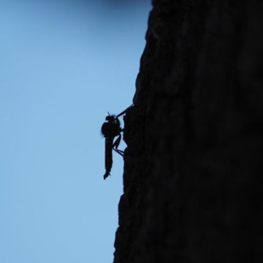 Laatst kwam ik met fotograferen een vlieg tegen, die bijna wegviel tegen de achtergrond, zoals je (bijna niet) kunt zien op de eerste foto. Het was dat ik zág dat hij op die plek landde, anders had ik hem waarschijnlijk nooit ontdekt.